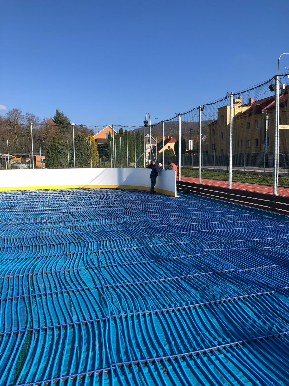 Právě jsme se posunuli do jedné z nejdůležitějších fází příprav – na plochu byly položeny chladicí trubice, kterými brzy začne proudit speciální kapalina, aby mohl vzniknout dokonalý led. Díky tomuto systému bude kluziště krásně zamrzlé a připravené i při proměnlivém počasí. Současně rostou i mantinely, takže se už vše chystá na okamžik, kdy přivítáme první bruslaře. Už se nemůžeme dočkat, až se po ledu opět rozjedete! ⛸️✨